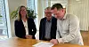 Kalaallit Nunaanni peqqinnissaqarfimmi pisortaq Tina Amondsen, radiologiiuneq Johnny Madelung aamma nakorsaaneq Martin Lundsgaard (saamianiit talerpimmut) Kalaallit Nunaata Rigshospitalillu suleqatigiinnissamut isumaqatigiissutaat atsiorpaat.