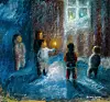 Hans Lyngep juullimi ileqqutoqaq silatangiaaneq kusanartumik imatut qalipappaa: Meeqqat juullikkunni illumiit illumut angalaarlutik kasuttoriarlutik erinarsorunik kaageeqqanik mamakujuttunillu qujassutitut tunineqartarput.