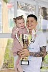 Aili Pedersen NORCA-mi ajugaanerminni tulluusimaaqaluni pokaali tigullugu panini Nomi kissumiaraa.